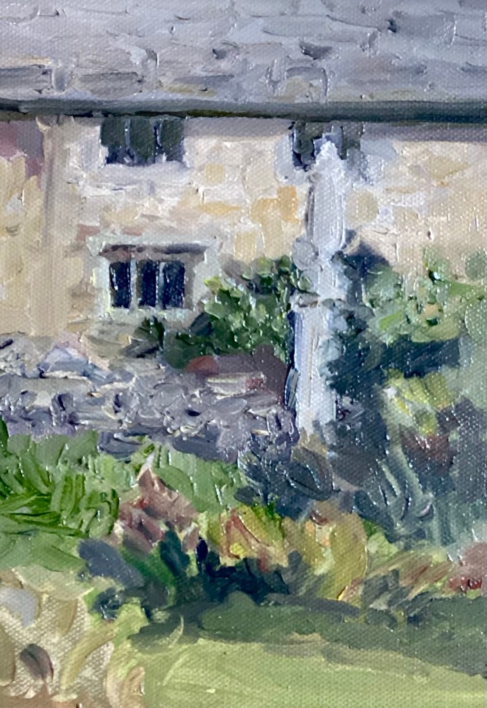 My newest painting, a small oil started onsite in September and finished in my studio. I loved the textures and colours of stonework and plants which inspired the thicker application of paint and markmaking. It was a beautiful autumnal morning.
